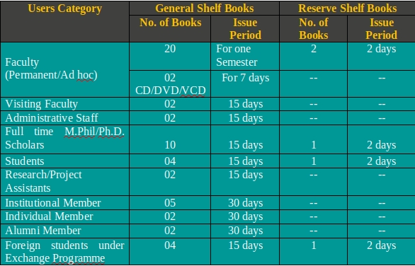 The borrowing facility can be restricted or suspended in case of misbehavior or misuse of Library facilities/materials